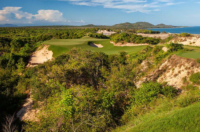 In fact, The Bluffs Ho Tram Strip has some of the best geographical traits for a top golf course layout. For example, the whole site sits on a coastal plateau with 50 meter elevation changes from the highest to lowest point and holes are routed among towering seaside sand dunes. The course was built on sandy loam soil with native crawling vegetation. This creates excellent drainage and turf conditions. Next, being exposed to high sea winds at certain times through the year plays havoc and creates extreme challenge for even the best seasoned golfers. The links course also makes for a golf experience that's as much a feast for the eyes as it is a challenge.